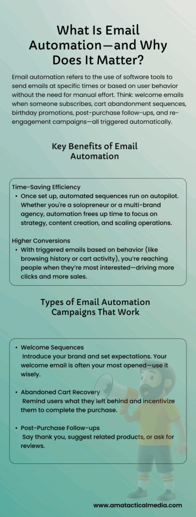 At AMA Tactical Media, we believe automation is more than a tech feature—it’s a strategic advantage. That’s why we help our clients build email systems that do more than send—they sell, nurture, and scale.